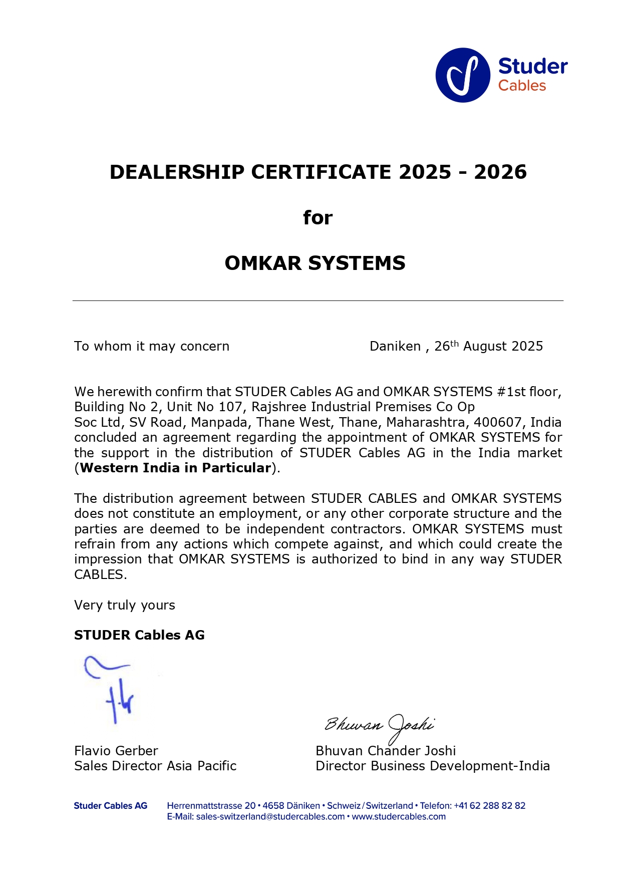 Choosing Omkar Systems ensures genuine Studer Cables, expert technical support, reliable supply, and application-specific guidance.